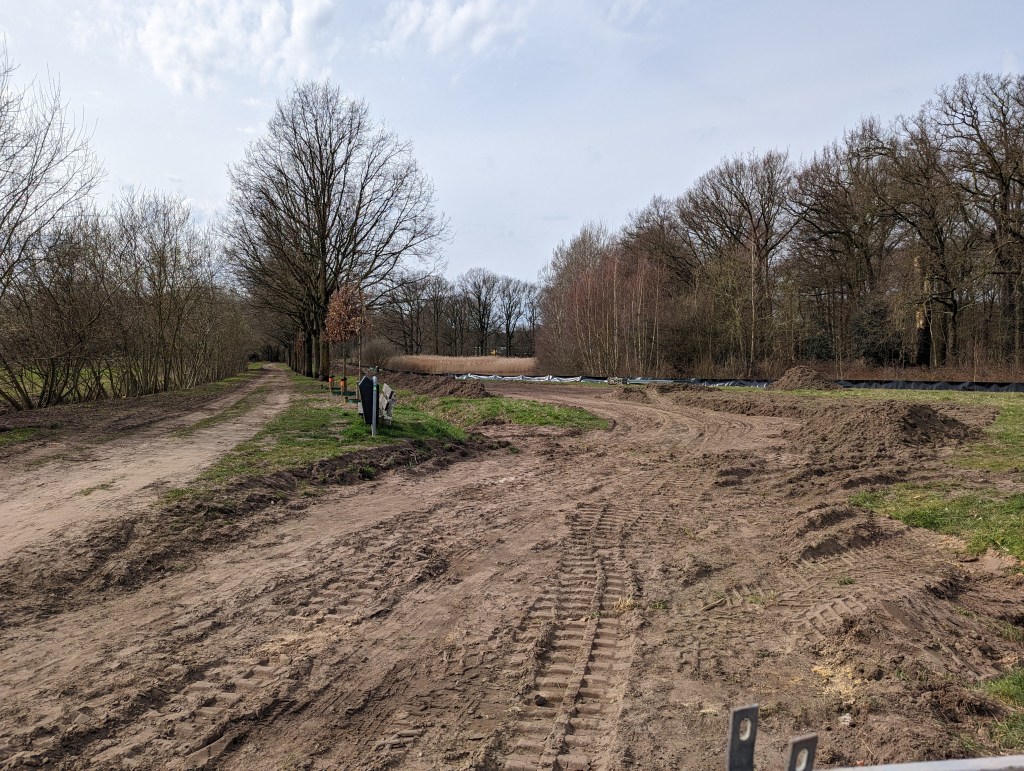 Alle buurtbewoners hebben gezien hoe het grasveld naast de Wasvenvijver is platgereden en bomen zijn omgehakt Hier komt de bouwweg naar de nieuwbouw achter het huidige Lorenz Casimir Lyceum. Bij de organisatie van dat nieuwbouwproject vorig jaar is besloten dat het gunstiger is dat het bouwverkeer door het natuurterrein heen rijdt. Zo heeft de school er minder last van en blijft het kunstgrasveld onaangetast.